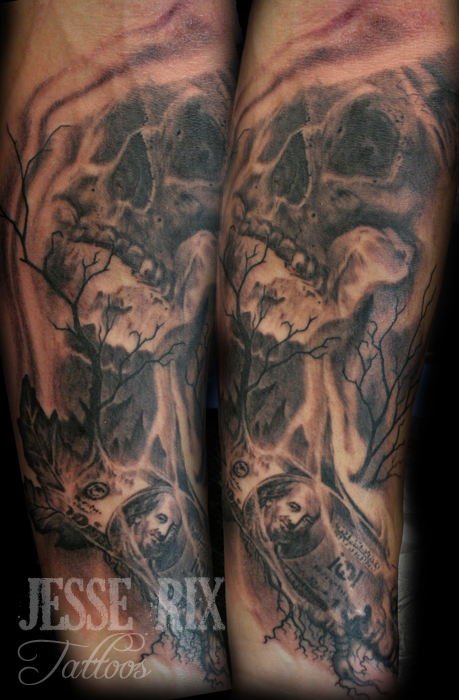 Kaps New Tatt Money Is The Root Of All Evil Half Sleeve Tattoos Drawings Urban Tattoos Evil Tattoo